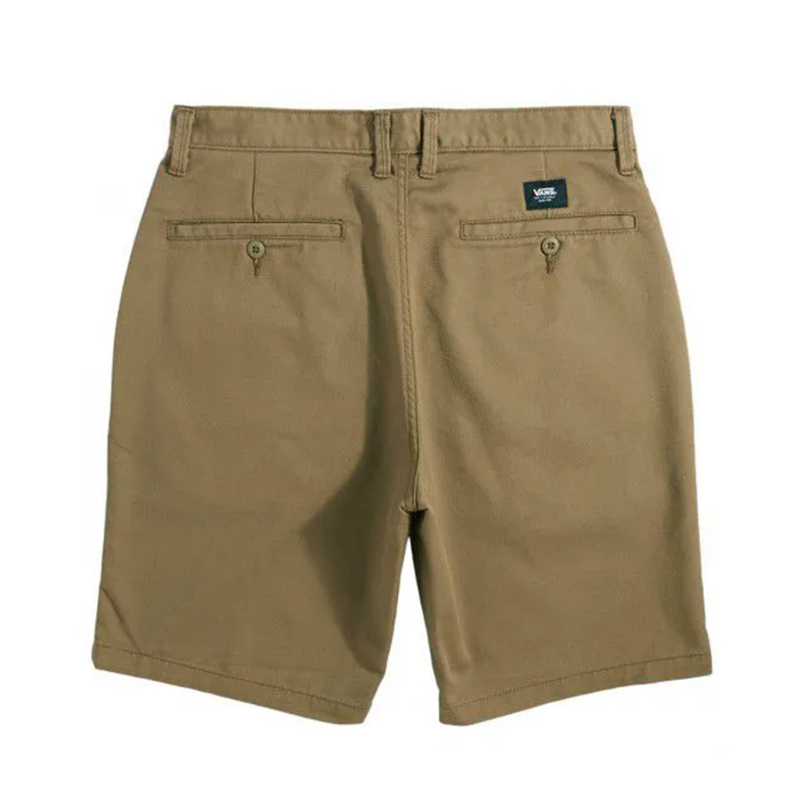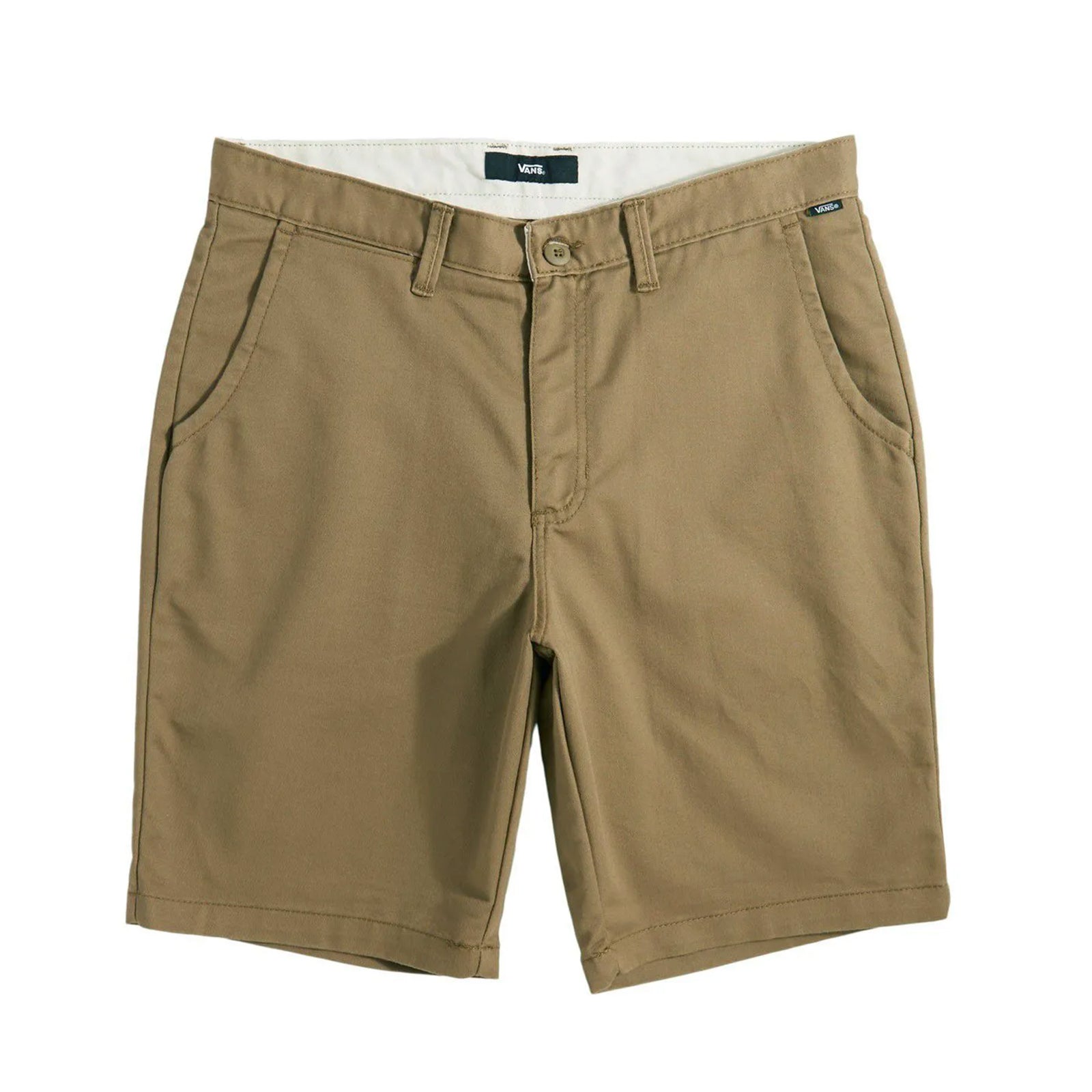 A bermuda Vans Authentic Stretch é feita de 68% algodão, 30% poliéster e 2% elastano. De sarja stretch resistente estilo chino, apresenta uma composição exclusiva de fibras estruturadas para oferecer conforto e maior durabilidade, com um caimento excepcional e retenção elástica. Possui bolsos frontais tipo faca e traseiros debruados com botão, etiqueta com logo Vans e caimento moderno com cintura média.