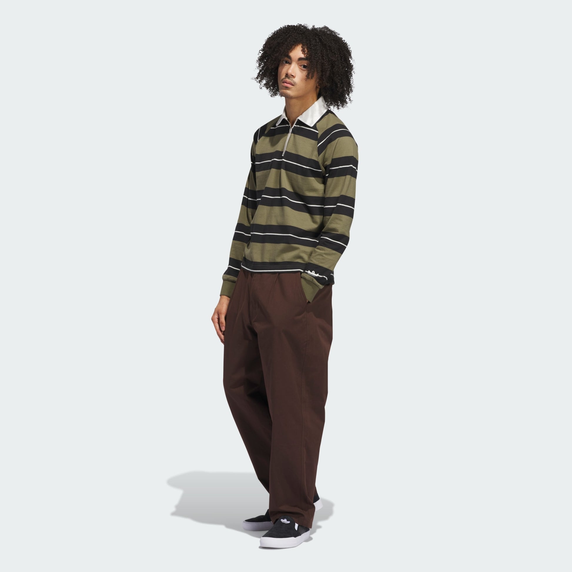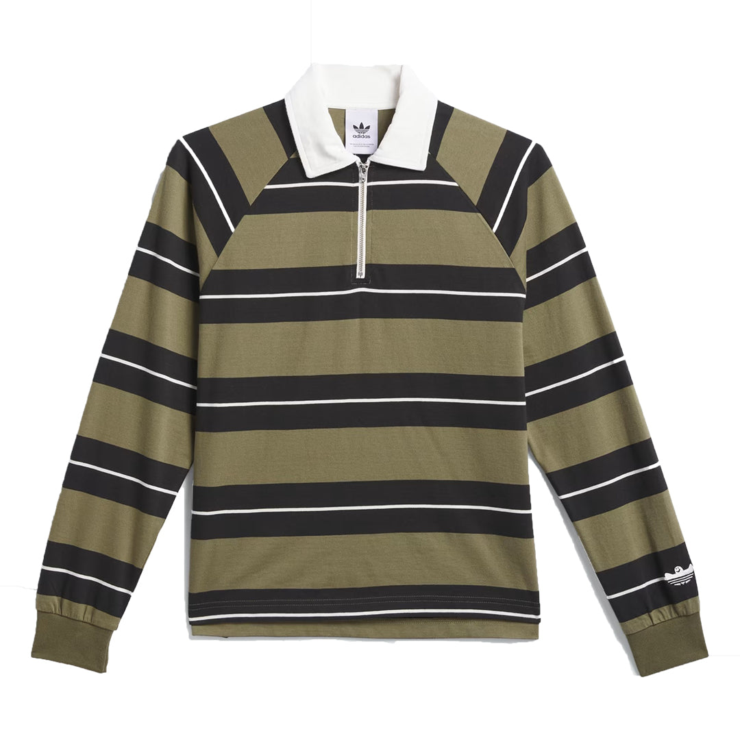 +A camisa Shmoofoil Rugby da Adidas combina a silhueta clássica com design contemporâneo em tons Legend Ink e Core White. Seu corte folgado, meio zíper frontal e barra posterior alongada garantem conforto e estilo diferenciado. Confeccionada em 100% algodão, apresenta o icônico logo Trefoil reinterpretado por Mark, complementado por listras personalizadas que elevam esta peça a um patamar de exclusividade no streetwear.
