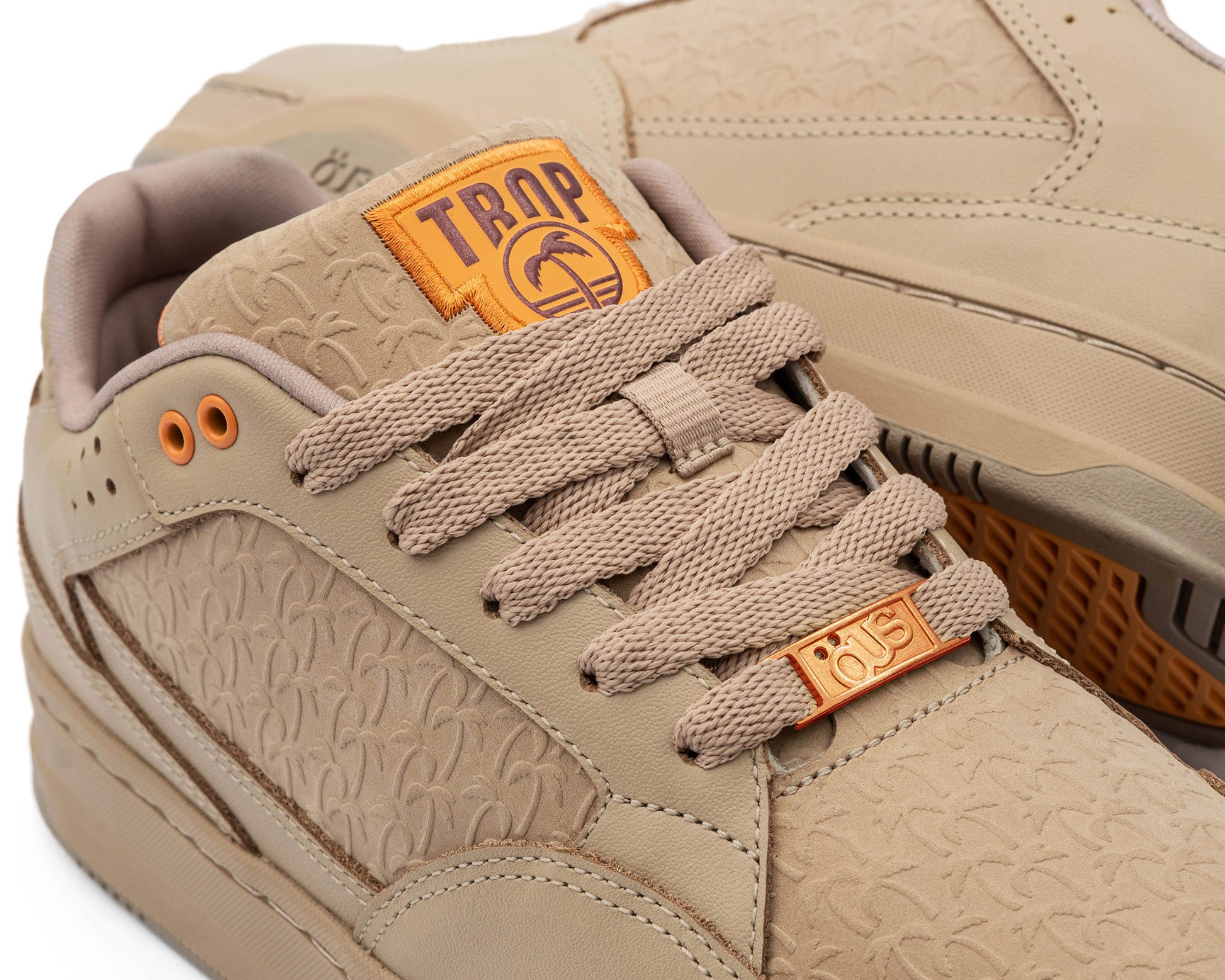 +A colaboração é composta pelo modelo SÖUSA e uma vela aromática cítrica em formato do tênis, que é confeccionado em couro curtido, sem metais pesados e com detalhes personalizados em alto-relevo com coqueiros que simbolizam o TROPKILLAZ. Seu forro é feito de poliéster reciclado e seu solado é com Granular A+, feito a partir de uma mistura de pequenos grânulos de borracha natural da seringueira com borracha sintética. Possui um passador para cadarço "lace tag" produzido em metal e palmilhas personalizadas. Além disso, tem uma etiqueta na lingueta com detalhes em alto-relevo e bordados que destacam a marca da collab ÖUS x Tropkillaz e dois pares de cadarços extras.